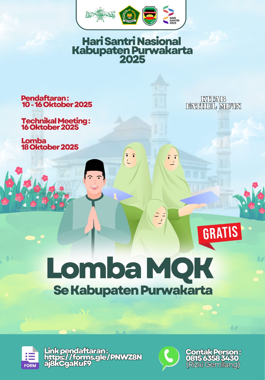 Lomba MQK akan dilaksanakan pada Sabtu, 18 Oktober 2025, bertempat di Gedung PCNU Purwakarta.