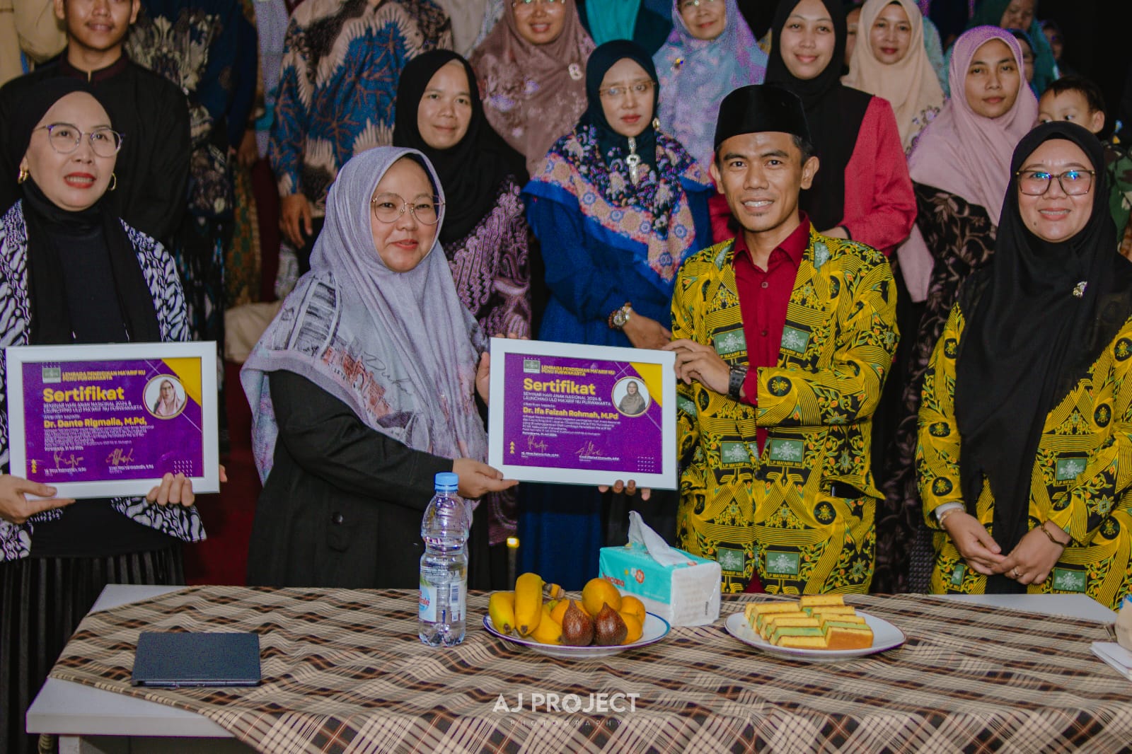 Pengurus LP Ma’arif NU Purwakarta saat memberikan sertifikat kepada Ketua LP Ma’arif NU Jawa Barat, Dr. Hj. Ifa Faizah Rohmah dan Ketua Komisi Nasional Disabilitas RI, Dr. Dante Rigmalia,